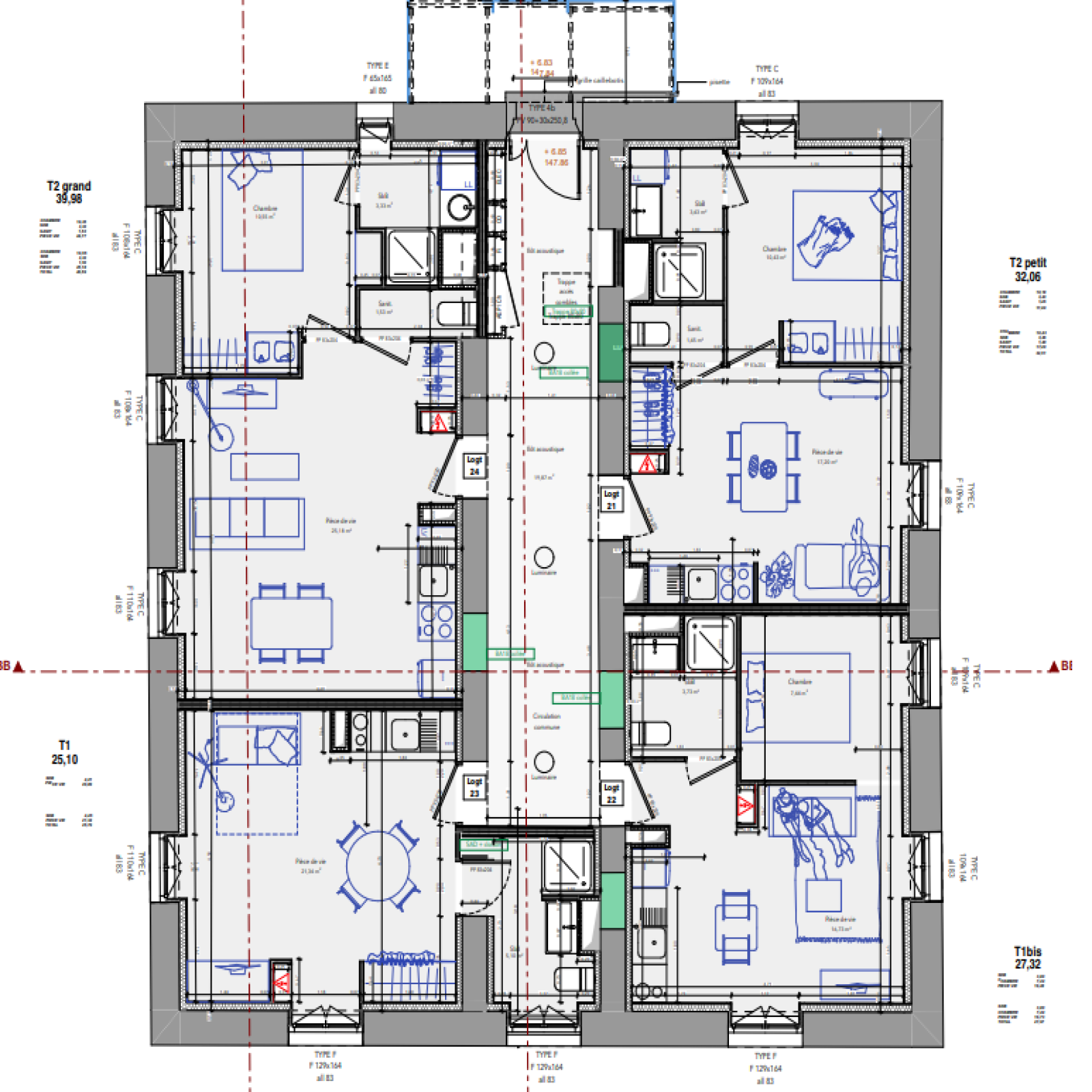 - T2 de 40 m² et 32 m² — 465 € et 383,73 € CC, dont 35 € de provision sur charges