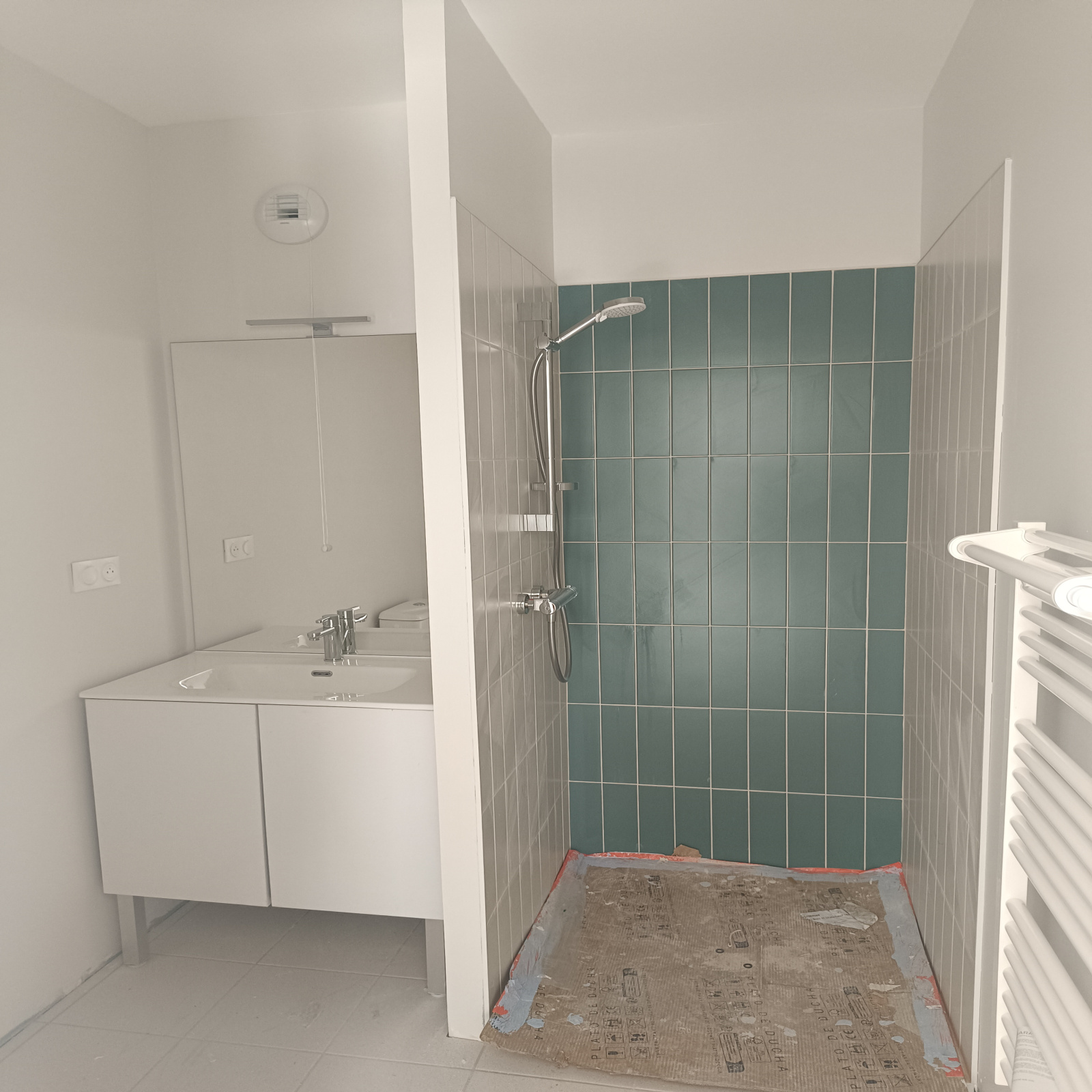 - Salle d'eau avec bac extra plat et sèche serviette électrique