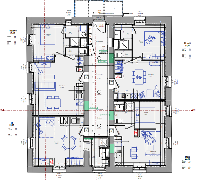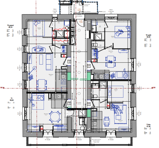 - T2 de 40 m² et 32 m² — 470,43 € et 384,17 € CC, dont 35 € de provision sur charges